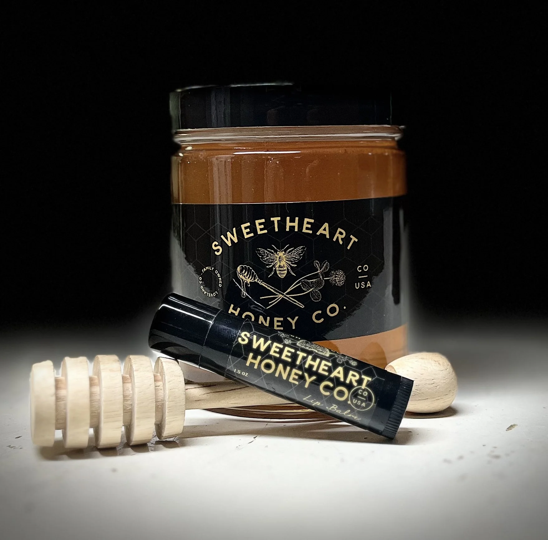 Our ingredients include Sweetheart beeswax, castor oil, lanolin oil, shea butter, jojoba oil, vitamin E, sunflower lecithin and of course our Sweetheart Honey. BOOM!